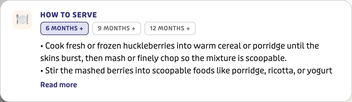 Browse 400+ pediatrician-backed foods with prep guides and age-appropriate textures — all in one place.
