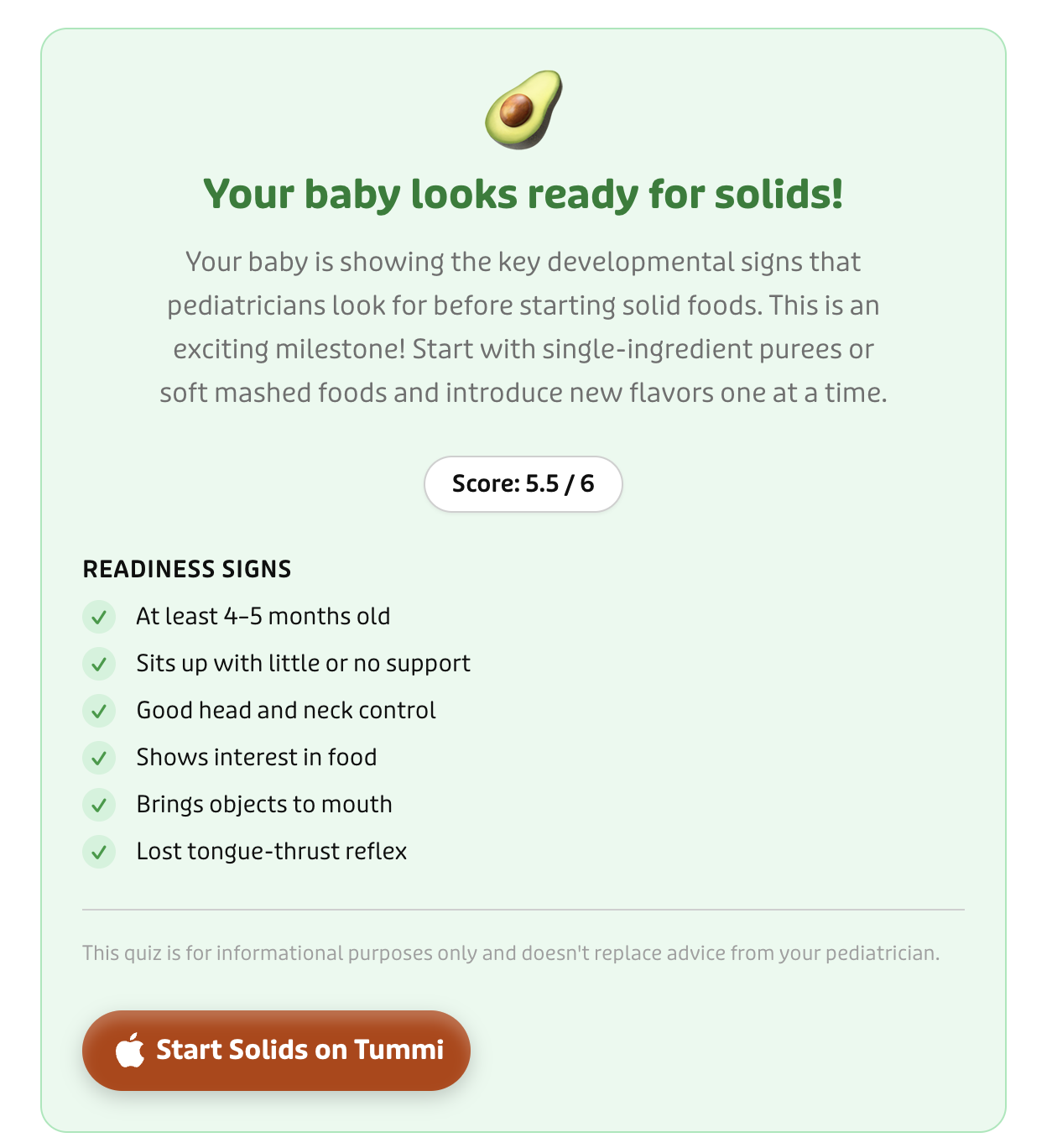 Answer 6 quick questions based on AAP readiness signs to find out if your baby is ready to start solid foods.